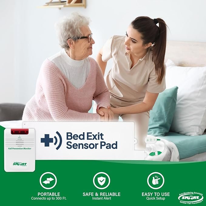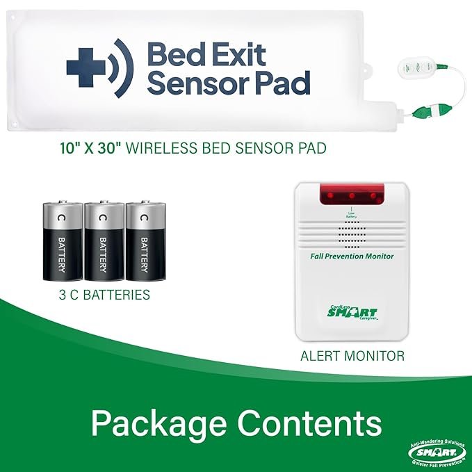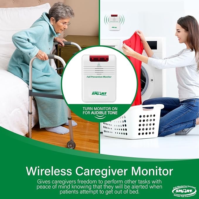 This cordless alert system includes a wireless monitor and bed pad to support safer mobility monitoring without in-room alarm noise. It helps caregivers respond quickly while reducing trip hazards, cord tangles, and disruption for residents in home care and facility settings.