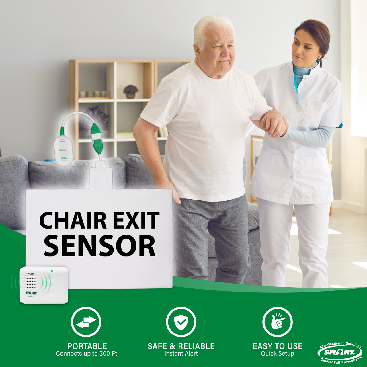 Chair Exit Alarm with Caregiver Pager for Fall Prevention & Mobility Monitoring