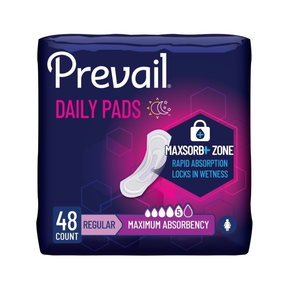 Prevail Ultra Bladder Control Pad is built for heavier bladder leakage with maximum absorbency and a secure adhesive strip. The breathable cloth-like outer layer, leg gathers, and individually wrapped pads support comfort, cleanliness, and dependable daily protection.
